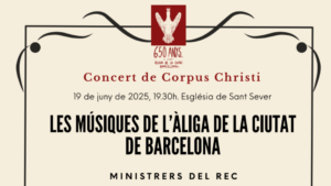 [2025-06-14] El dijous 19 de juny de 2025 a les 19.30 h, l’església de Sant Sever acollirà el Concert de Corpus titulat Les músiques de l’Àliga de la Ciutat, a càrrec dels Ministrers del Rec sota la direcció de l’etnomusicòleg Pol… (...)Representants de grups de foc de Catalunya compareixen al Parlament i reclamen una nova regulació que garanteixi la continuïtat de les festes populars amb pirotècnia